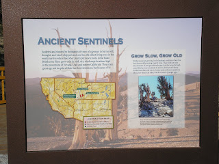 [Click once to enlarge; press ESC to return here.] The key to becoming an ancient bristlecone pine is slow growth. Slower-growing trees "produce only tiny amount of growth each year, but the wood is hard, resin-filled, and very resistant to insects, disease, and decay. Bristlecones which take root in better soils with more moisture often grow faster and taller, but die at much younger ages."